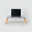 A table for a laptop in bed, on the sofa or for working on the floor. The perforated ornament of the table allows you to change the location and height of the laptop, and also provides additional cooling of the device.